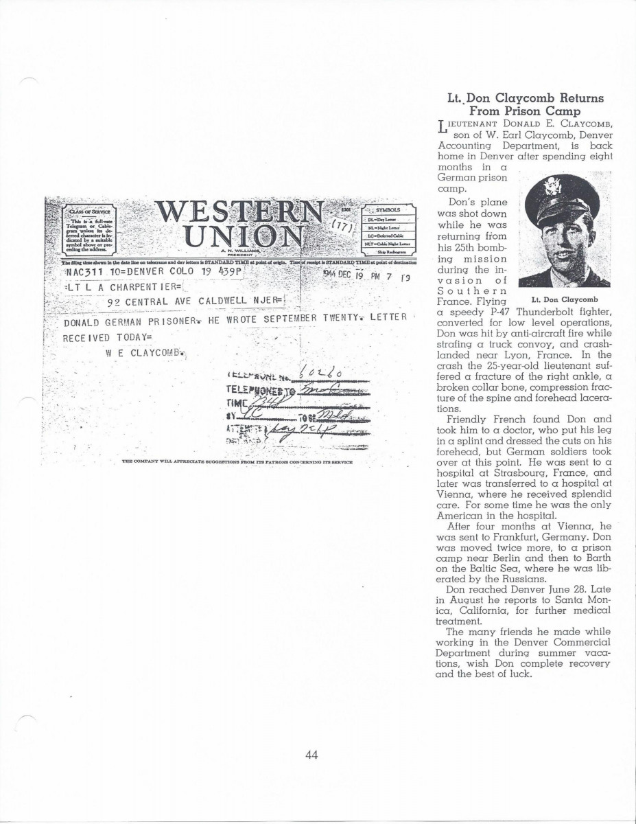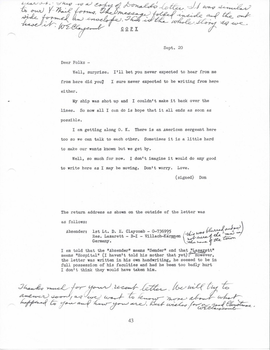 “Pilot and POW, story provided by his son Robert Claycomb”
